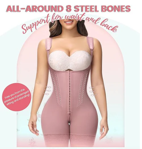 Achieve an hourglass figure effortlessly with shapewear, designed to support and enhance your bust while providing excellent tummy control. With all-around support from elastic memory steel bones, it reduces pressure and discomfort from prolonged sitting or standing, making it perfect for daily wear or postpartum recovery.