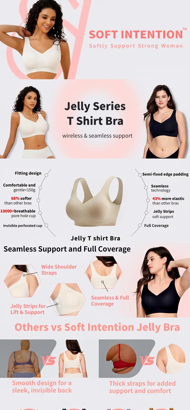 Say goodbye to poking wires, bulging seams, and daily discomfort. The Soft Intentions Seamless Bra is the everyday essential you didn’t know you needed—until now.